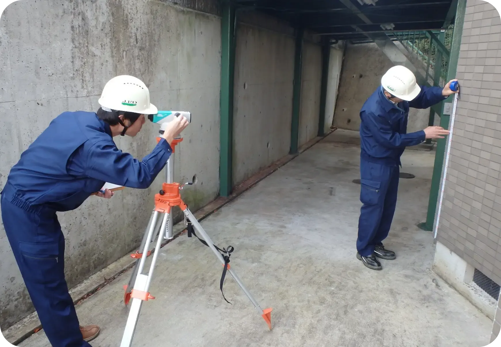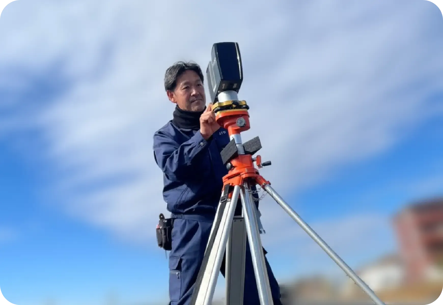 - 最先端の3Dスキャナーを活用し、未来を切り開くデジタル測量業務です。レーザー測量によって、正確な位置情報や高さデータを取得し、建設や都市計画において、設計・施工の精度向上、作業効率の改善に役立てます。