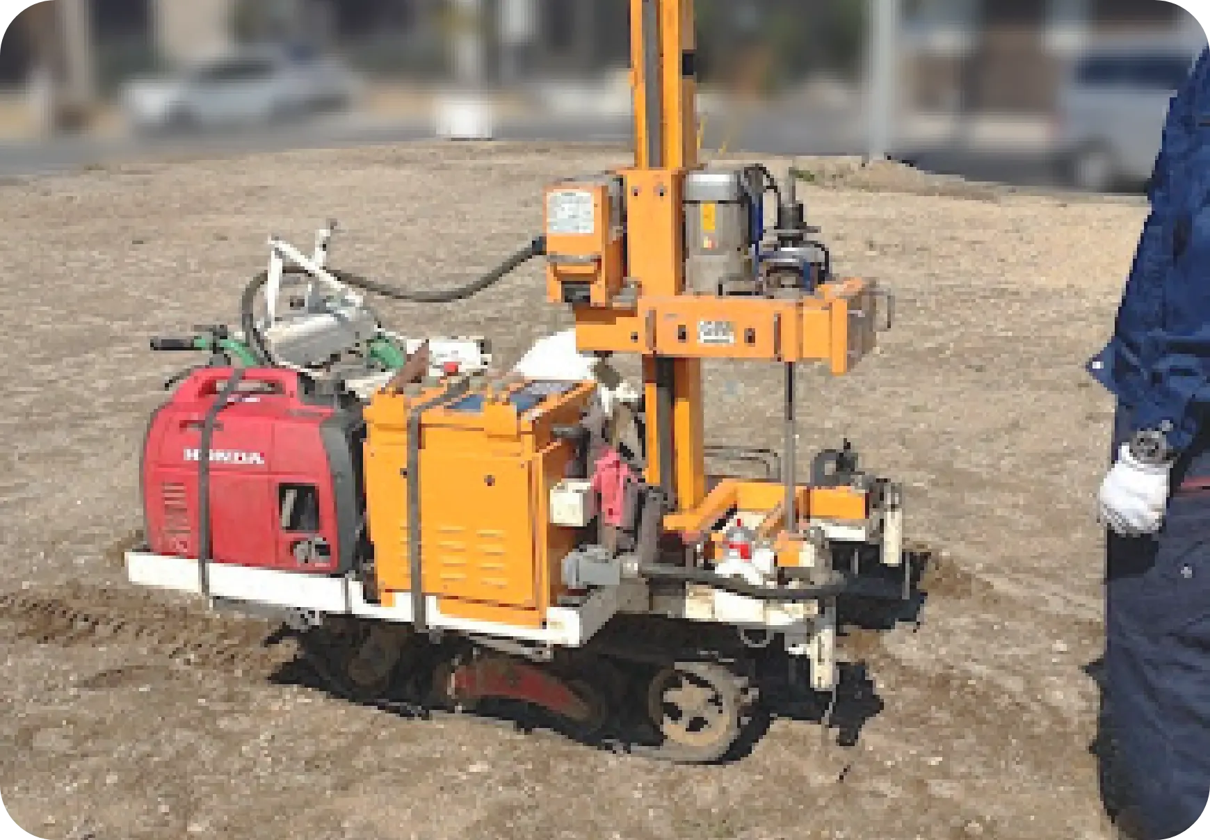 - 建物の基礎設計において非常に重要な工程です。土地の地質や土壌の強度、地下水位などを詳細に把握し、建物に適した基礎形式や必要な地盤補強の有無を判断します。