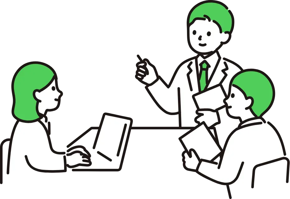 当社では、チームの連携強化とエリアごとの管理を推進するため「グループ制」を導入しています。各グループは予算達成と課題解決を目標に掲げ、プロジェクト活動を通じて主体的に取り組んでいます。メンバー同士で情報やノウハウを共有し、互いに成長をサポートする体制を整え、グループごとに異なる視点から問題解決に取り組むことで、全体の目標達成に貢献しています。また、エリアの特性を生かした柔軟な戦略立案が可能となり、組織全体が活気に満ちた環境の中で、多様な挑戦や成長の機会を提供しています。